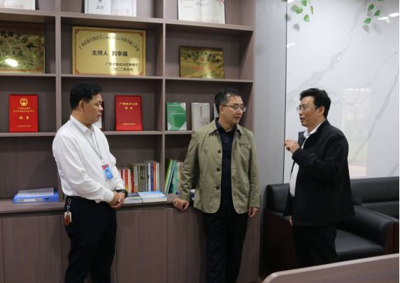 领导莅临指导“幸福职教工作坊”再添发展新动能发表时间:2025-12-06 20:58 2025年12月2日,惠风和畅,阳光明媚。在冬日暖阳的映照下,钦州市市委、市政府及市教育局相关领导一行亲临广西壮族自治区重点建设名师工作坊——“幸福职 教工作坊”进行实地调研与慰问,为工作坊的发展注入了新的动力。